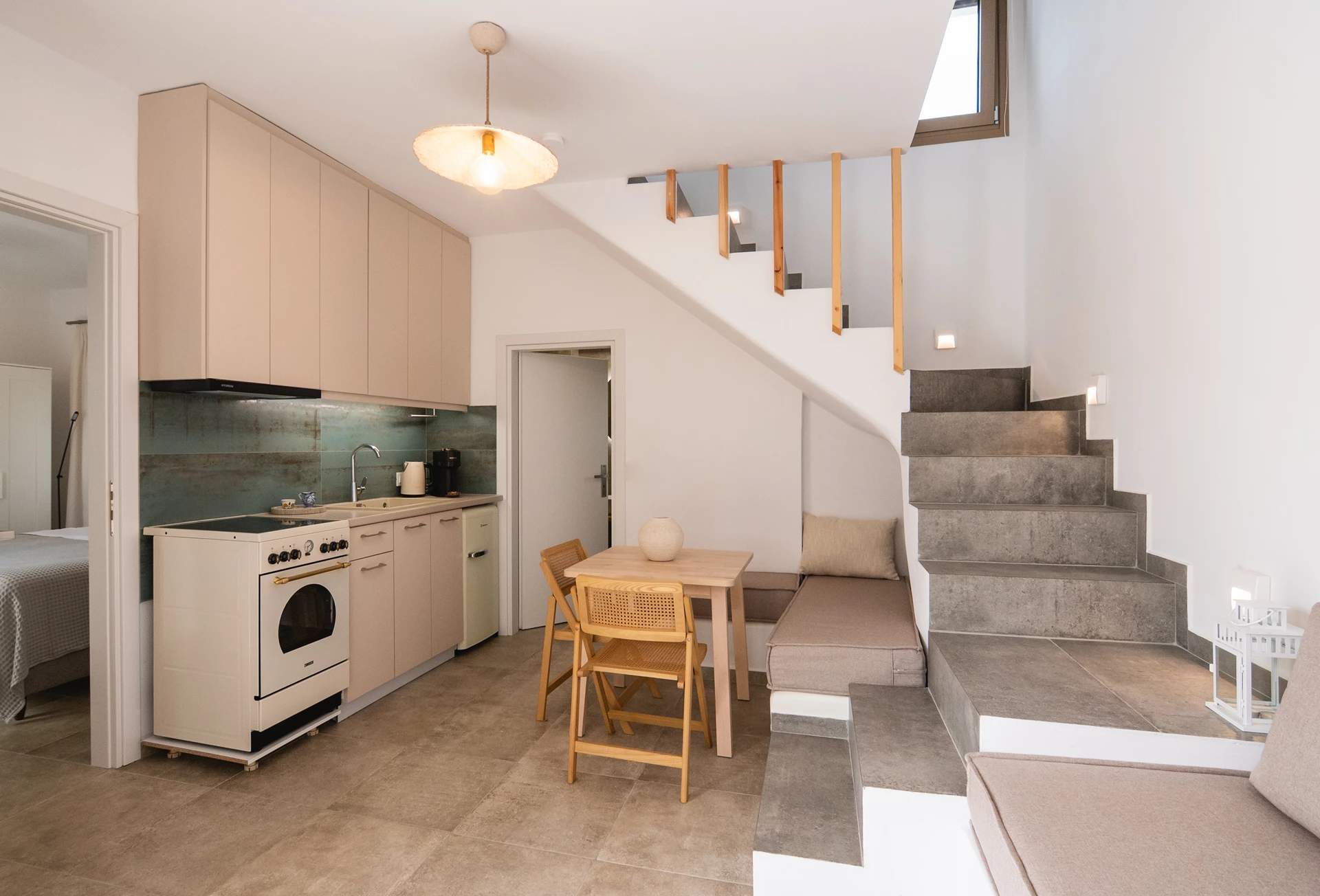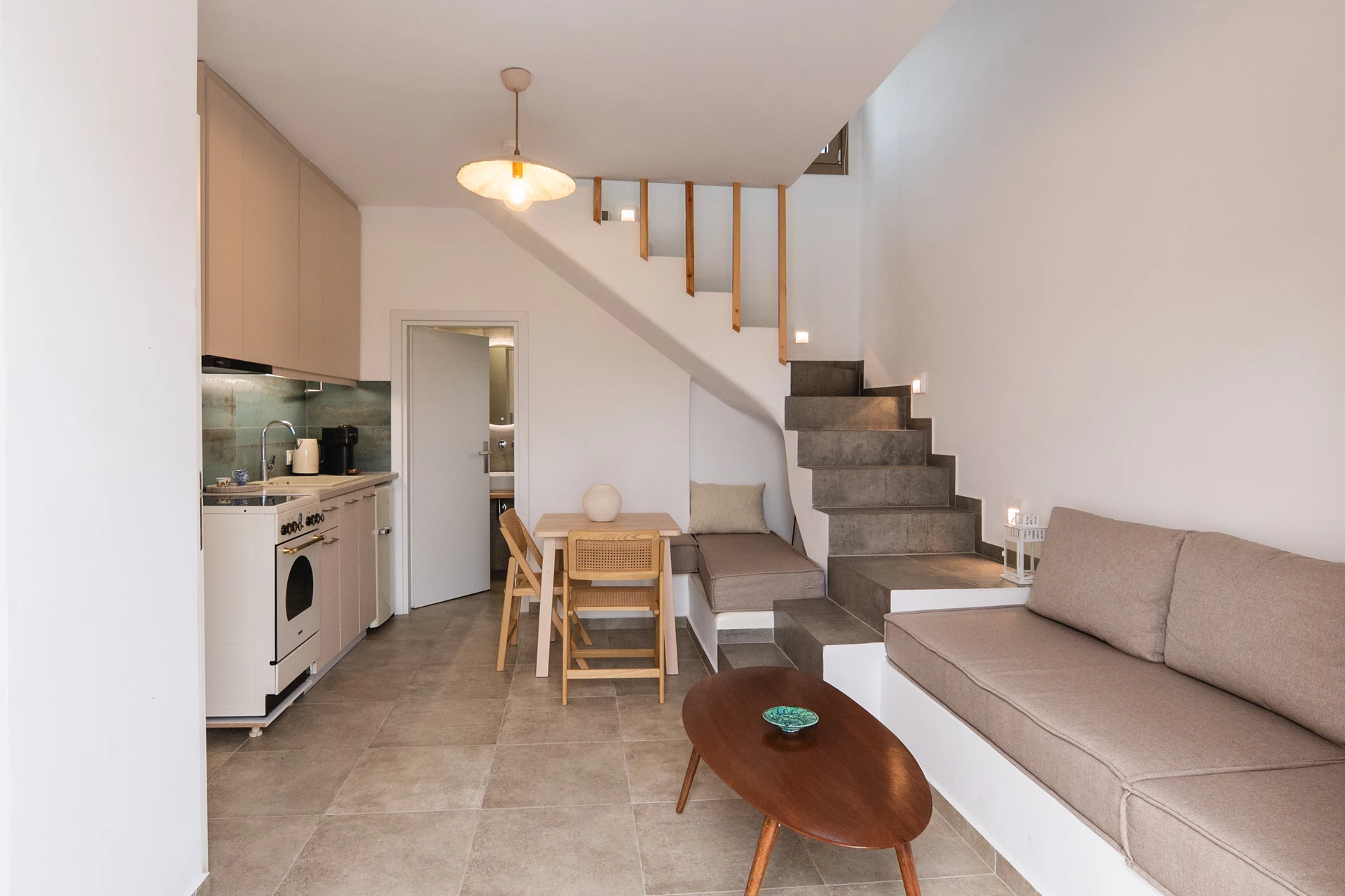 Each apartment of 50m2 is spread over two floors with a living room, kitchen, bathroom and two double bedrooms - one on each floor. The total capacity of each apartment is up to 5 persons